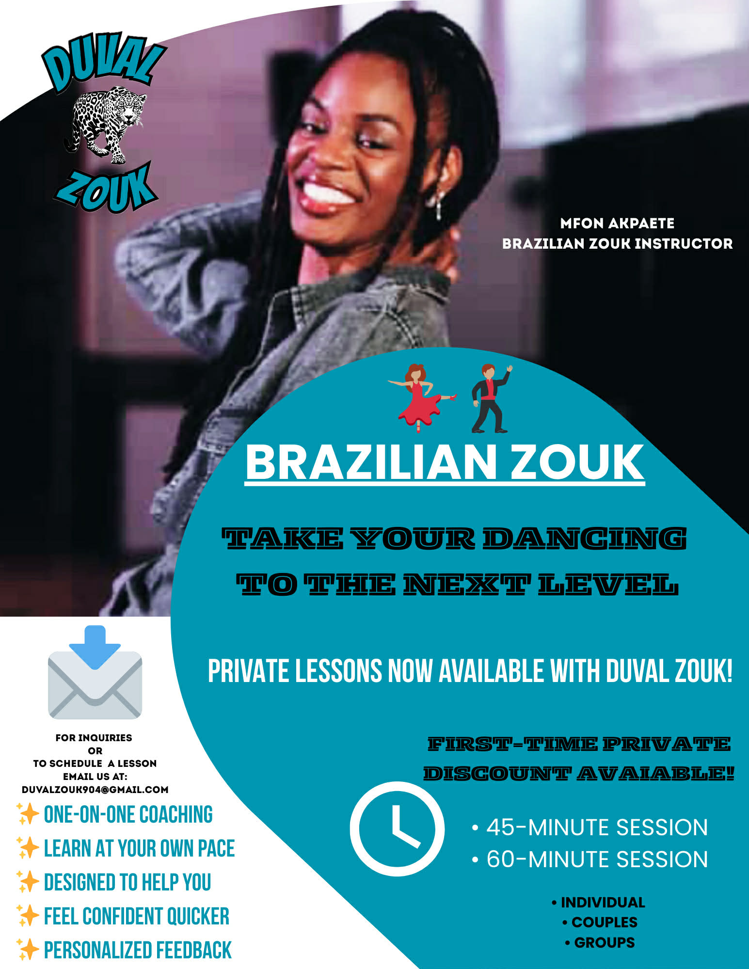 Her teaching blends strong fundamentals with expressive freedom, creating a welcoming space where beginners feel confident and experienced dancers feel inspired. Through Duval Zouk, Mfon is building more than dancers - she's building community, culture, and meaningful connection through movement.